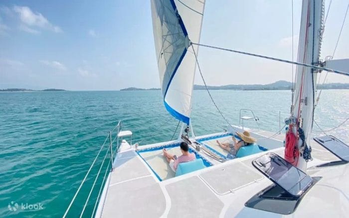 Парусный катамаран GAVINA — один из лучших на всём Самуи. Современный дизайн, динамичные линии корпуса, простор и премиальные материалы — всё это делает катамаран идеальным выбором для тех, кто ценит комфорт и стиль. Судно вмещает до 24 гостей, а также предлагает две кондиционируемые каюты, уютную гостиную и две оборудованные ванные комнаты.