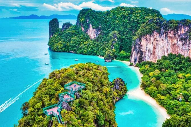 - 8:30 — Лагуна острова Хонг. Длинный пляж с белым песком. Снорклинг среди кораллов. Прогулка по джунглям. Подъём на смотровую площадку с панорамой Краби.