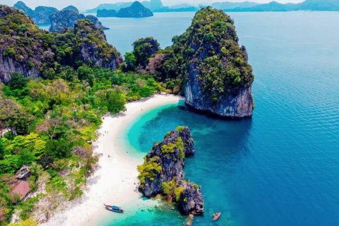 Уникальный маршрут для тех, кто хочет увидеть Краби до того, как сюда приедут толпы туристов. Утреннее море спокойное и прозрачное, острова почти безлюдны, а фотографии получаются по-настоящему волшебными. Это идеальный вариант для лёгкого путешествия: всего полдня, но максимум впечатлений.