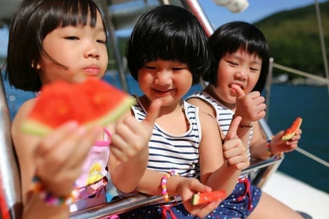 - Обед на борту: горячие блюда из морепродуктов, салаты, гарниры и фрукты, подаваемые прямо на якоре