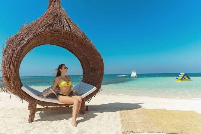 - Прибытие на остров, отдых на пляже: шезлонги, тень, гамачки, качели на воде.